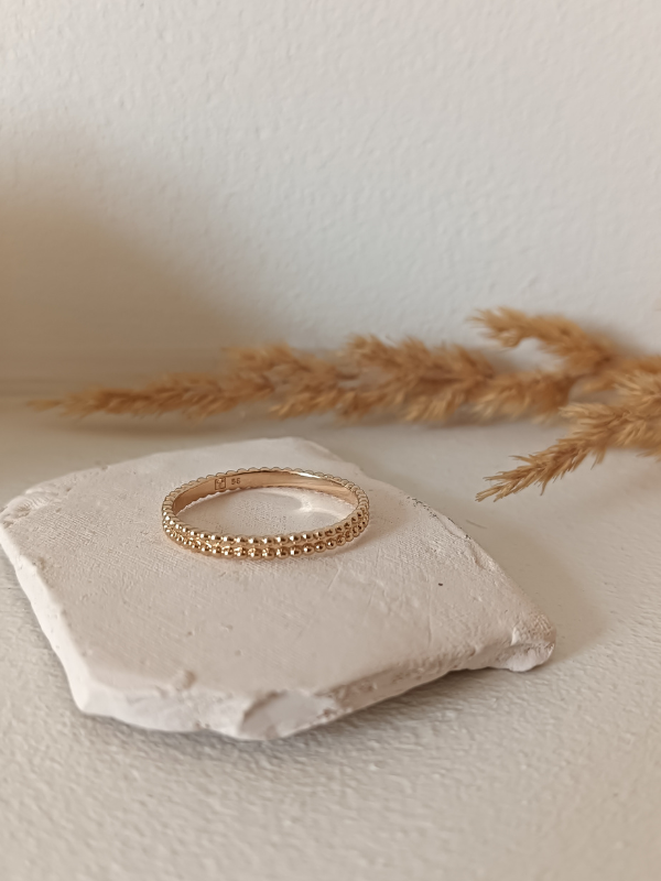 Monture délicate, finie de part et d'autre par une rangée de mini boules pour ajouter une discrète fantaisie à son allure intemporelle