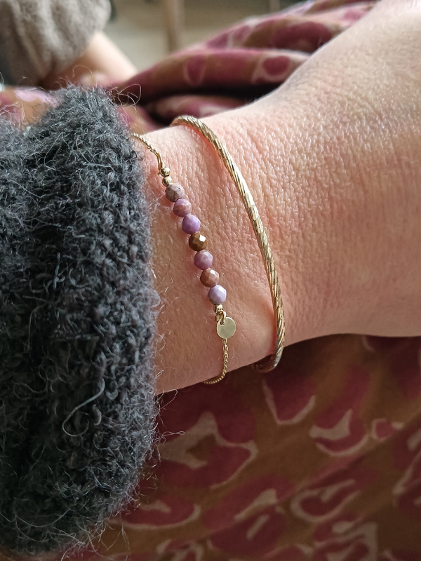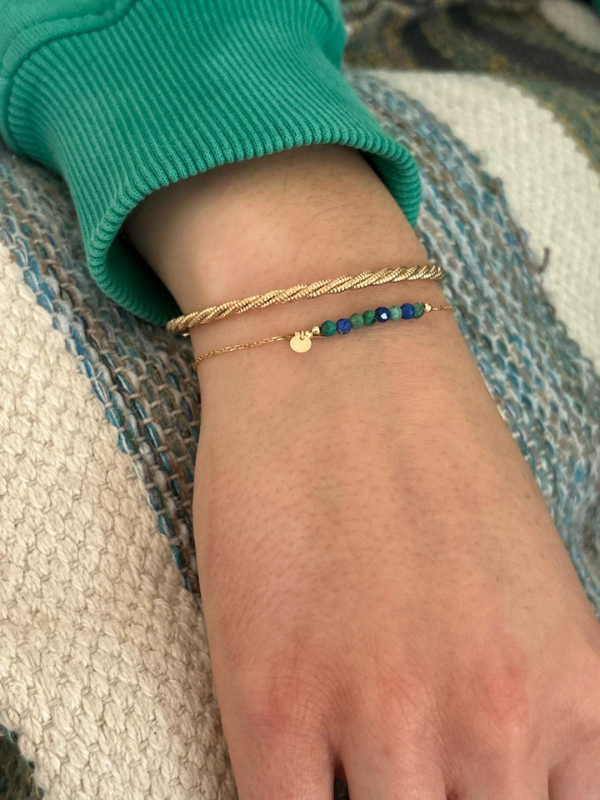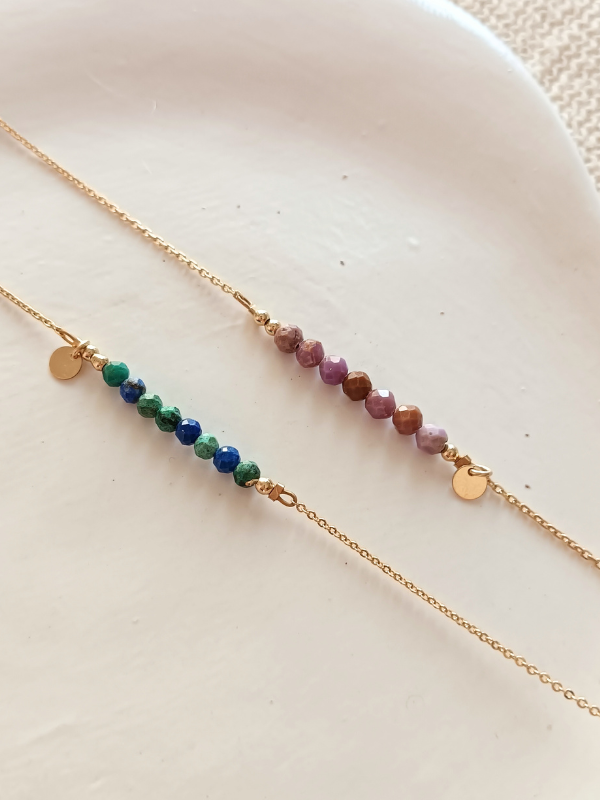 Bracelet fin en plaqué or, composé d'une rangée de pierres naturellement colorées.